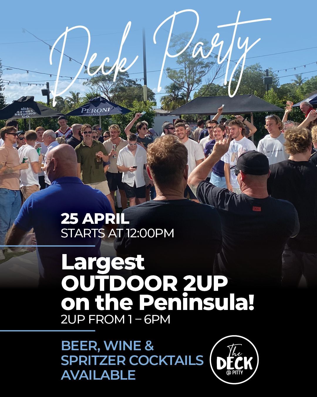 This Anzac Day, April 25, Pittwater is the place to be! We are hosting our annual Deck Party, bringing the community together for a day of tradition, mateship, and great entertainment.