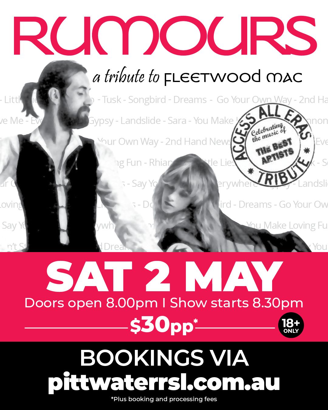 The success of Rumours as one of the biggest selling albums of all time has made this show one of the hottest tickets in town. Fleetwood Mac have an eclectic catalogue and this great Sydney based band with carefully chosen singers to bring some gorgeous interpretations of some of your favourite songs.
